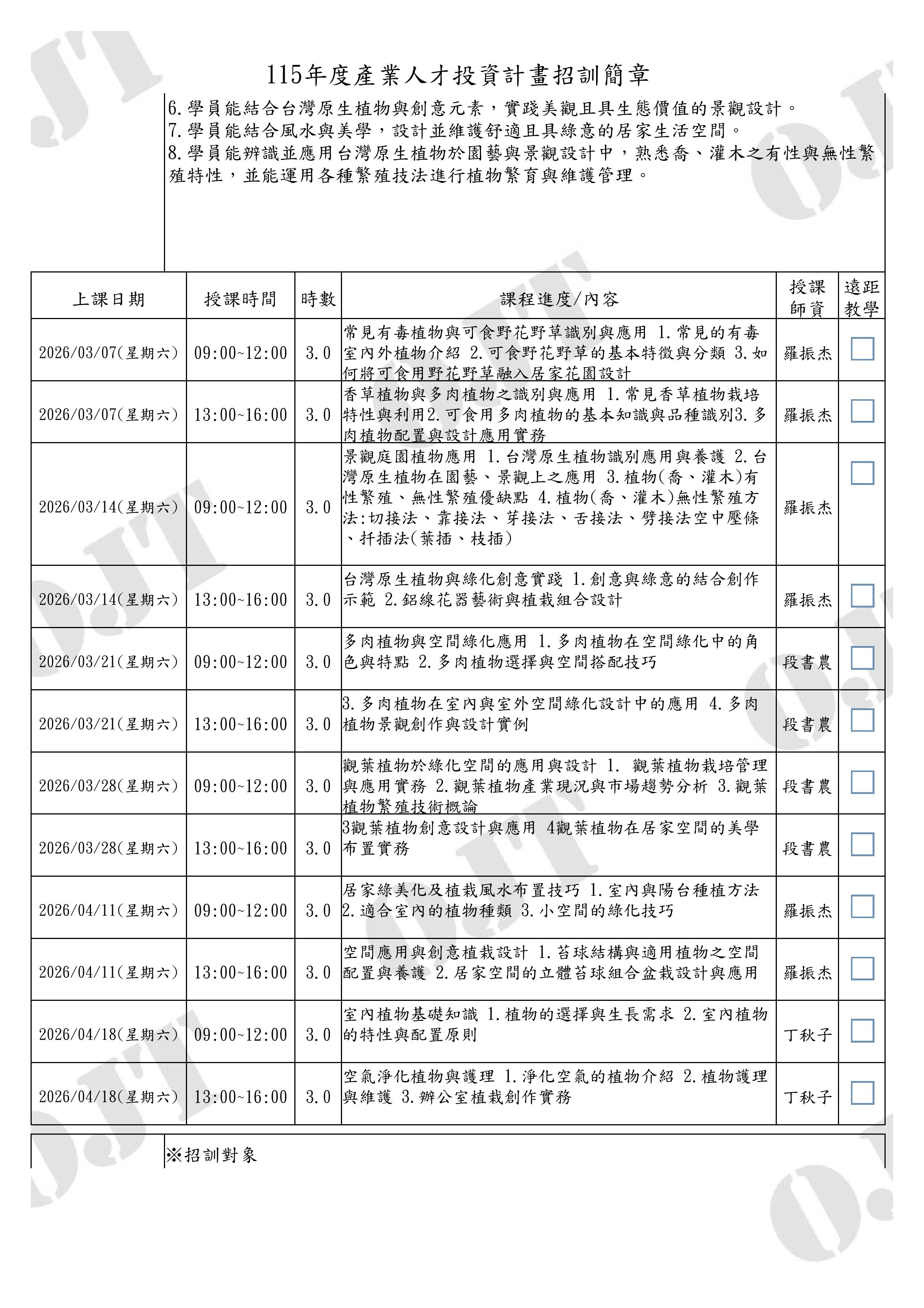 ◆課程時間:115/3/7-4/18共計6周周六30時